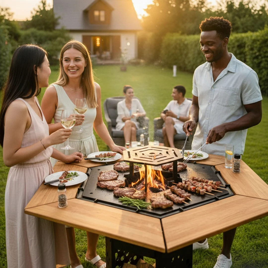 Επαγγελματικό BBQ: Η τεράστια εξαγωνική επιφάνεια (87 εκ. από γωνία σε γωνία) προσφέρει απίστευτο χώρο για ψήσιμο. Έξι πλευρές επιτρέπουν σε πολλά άτομα να ψήνουν ταυτόχρονα με άνεση.