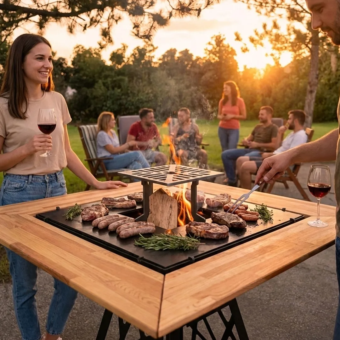 Επαγγελματικό BBQ: Η τετράγωνη επιφάνεια 75×75 cm προσφέρει μεγαλύτερο χώρο. Οι γωνίες είναι ιδανικές για σιγοβράσιμο, ενώ το κέντρο προσφέρει τη μέγιστη θερμοκρασία.